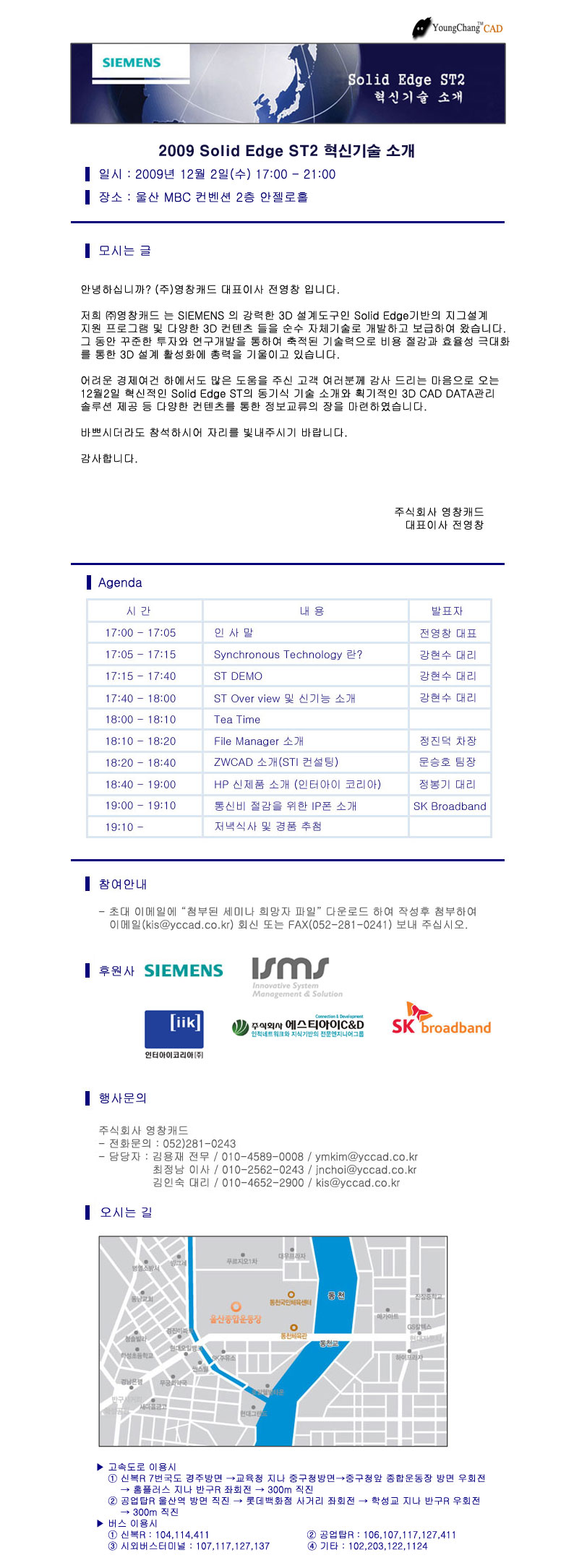 저희 영창캐드에서는 12월 2일 혁신적인 Solid Edge ST의 동기식 기술 소개와